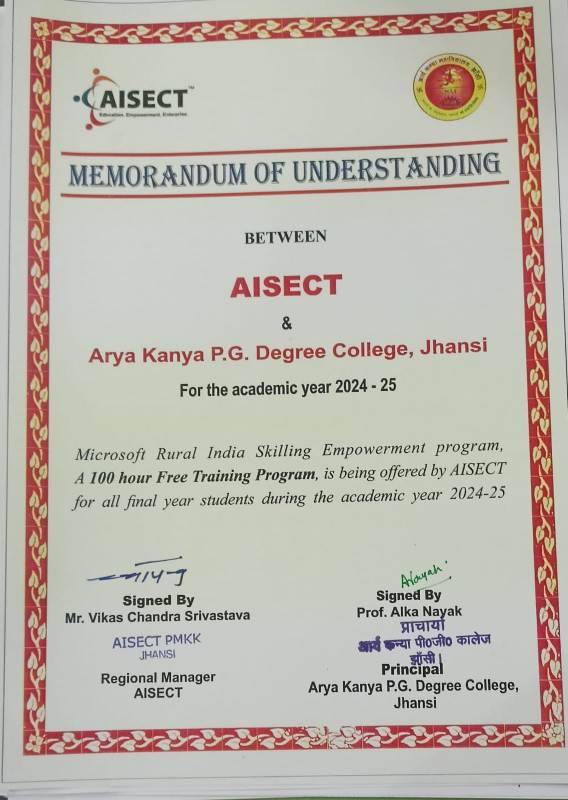 | 1 . | ARYA KANYA P G COLLEGE JHANSI AND AISECT |